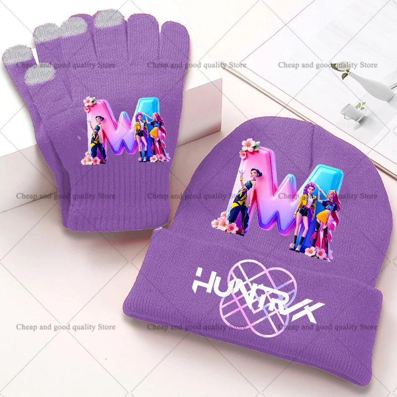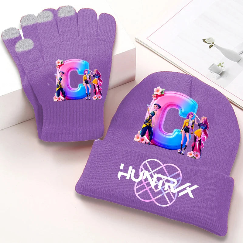 Ensemble Bonnet et gants Kpop Demon Hunters avec Lettre prénom. Idéal pour idée cadeau fête de fin d'année, anniversaire.